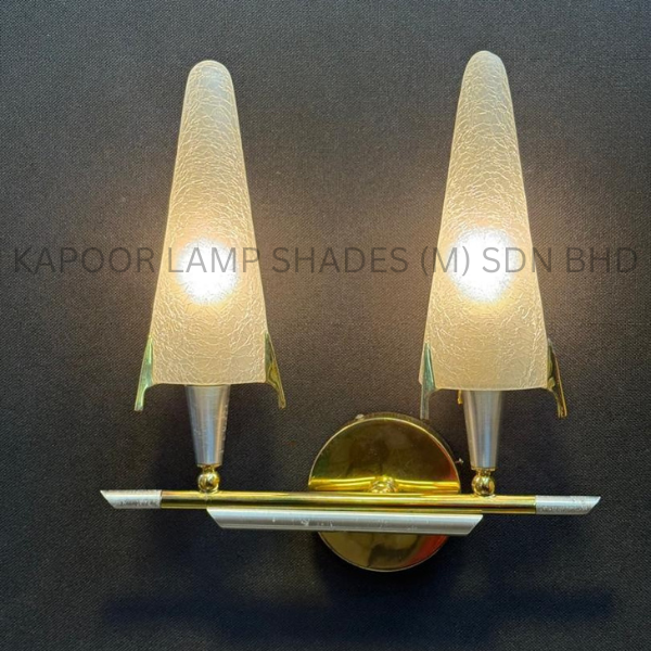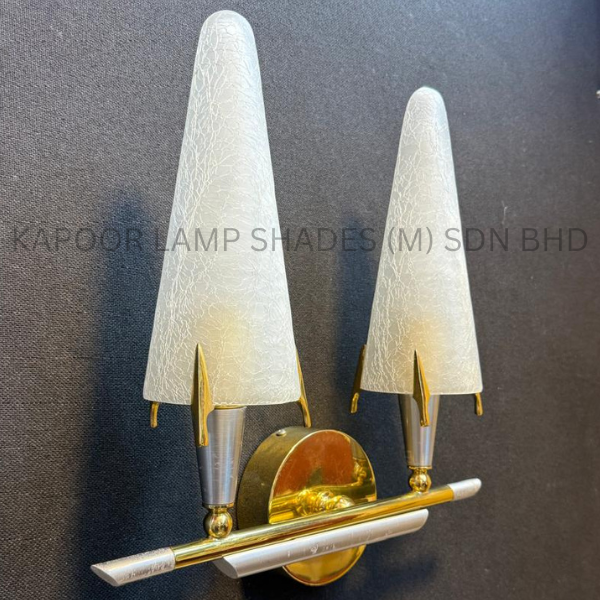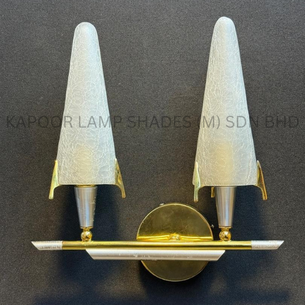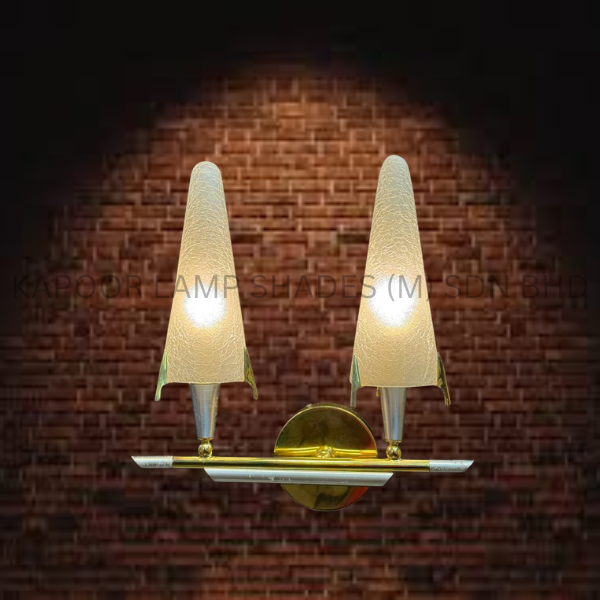 Polished Solid Brass Paired With Elegant Double Hand-Cut Cone Glass Shade
